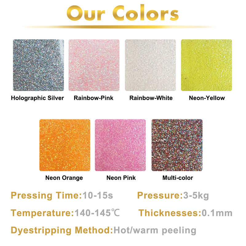 Обычная толщина 0,1 мм Обычный индивидуальный размер: 30-120 см, специальный размер можно настроить Яркий цвет с точкой вспышки, равномерный эффект вспышки Подходит для переноса одежды, штор, подарочных коробок, наклеек для украшения книг и т. д.